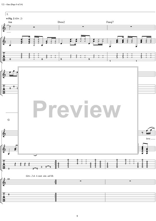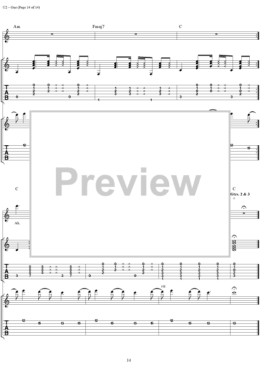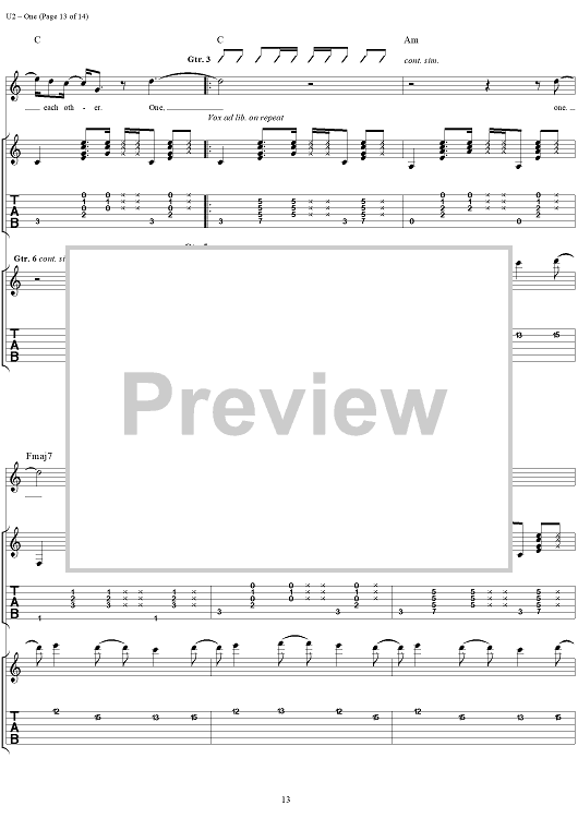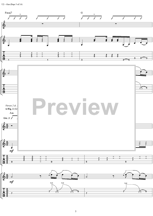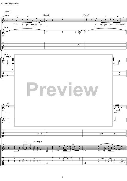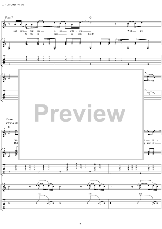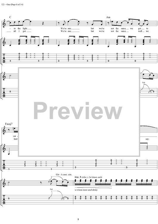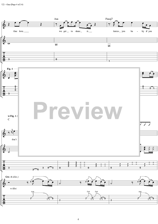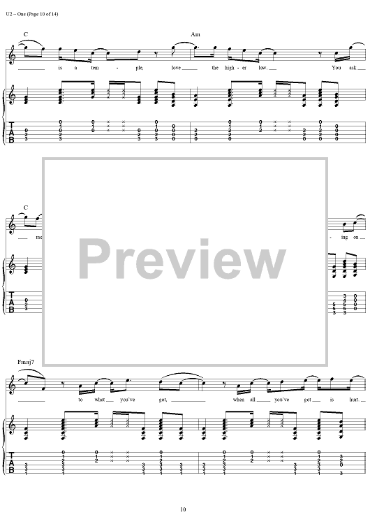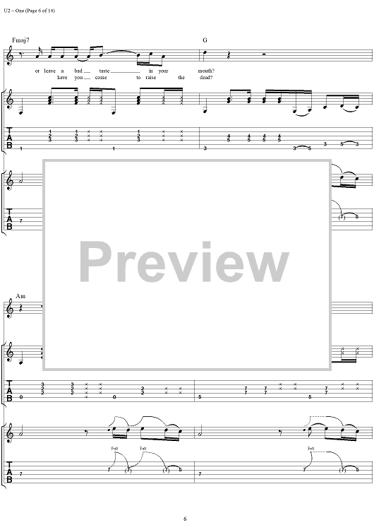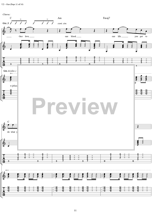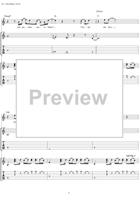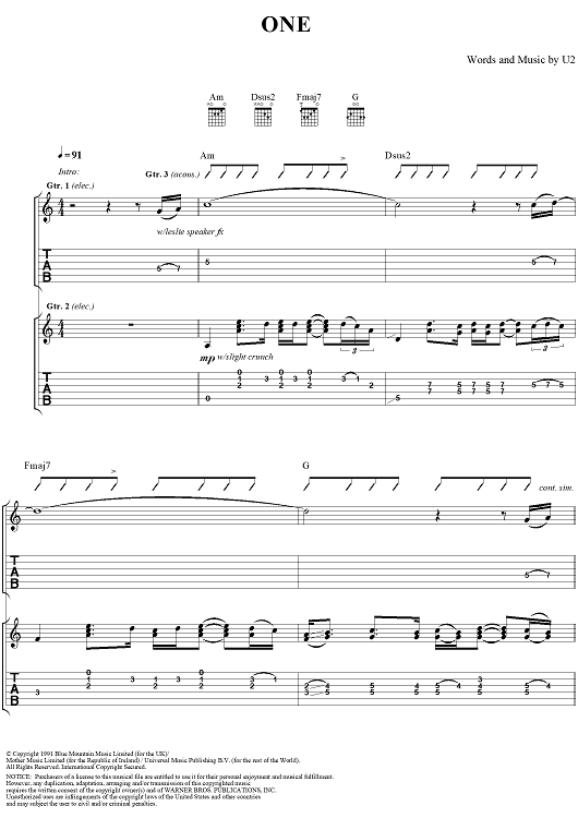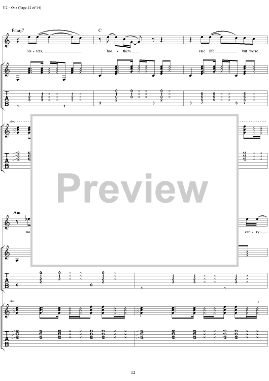 Digital Sheet Music for One by U2 scored for Guitar Tab/Vocal; id:296465