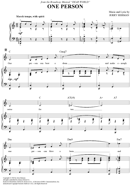 Digital Sheet Music for One Person by Jerry Herman scored for Piano/Vocal/Chords; id:366079