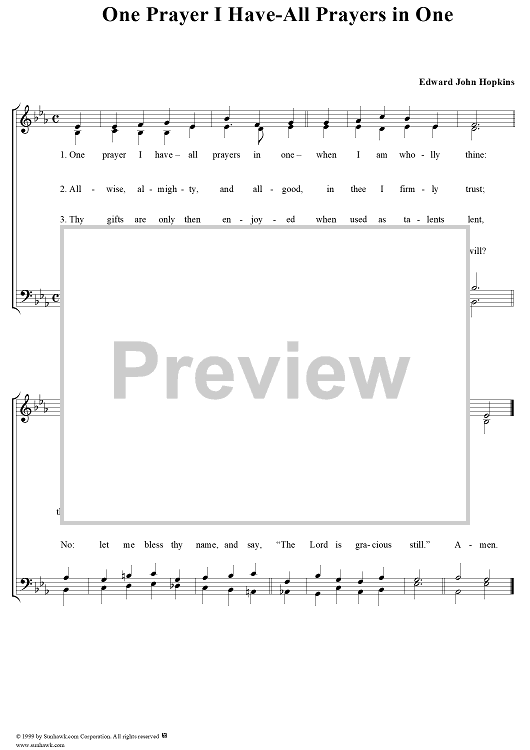 Digital Sheet Music for One Prayer I Have-All Prayers in One by Edward J. Hopkins scored for Four-part Mixed Chorus; id:266410