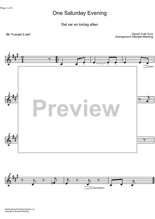 Digital Sheet Music for One Saturday Evening - B-flat Trumpet 2 by , Michael Wehding, Traditional scored for School Orchestra; id:324505