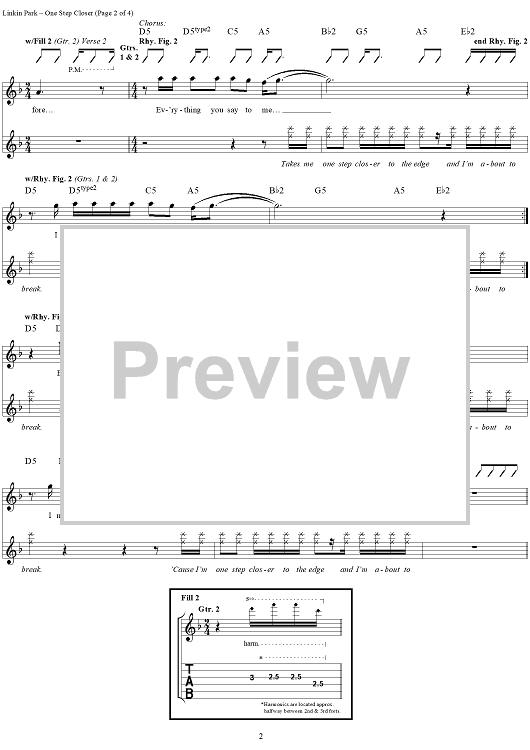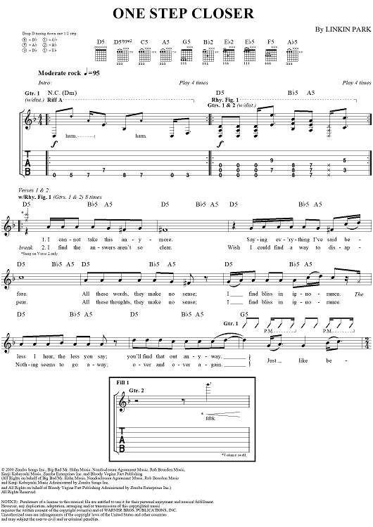 Digital Sheet Music for One Step Closer by Linkin Park scored for Guitar Tab/Vocal; id:285778