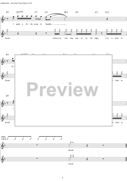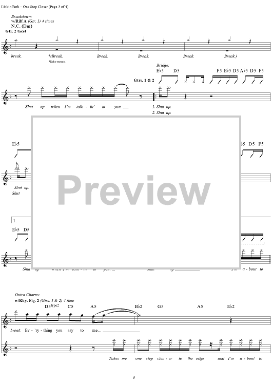 "One Step Closer" Sheet Music by Linkin Park