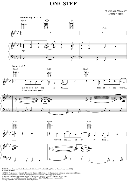 Digital Sheet Music for One Step by John P. Kee scored for Piano/Vocal/Chords; id:311184