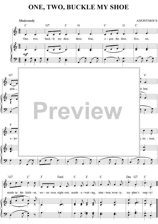 Digital Sheet Music for One, Two, Buckle My Shoe by Unknown Writer scored for Piano/Vocal/Chords; id:277124