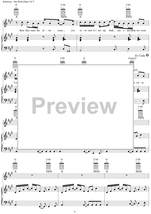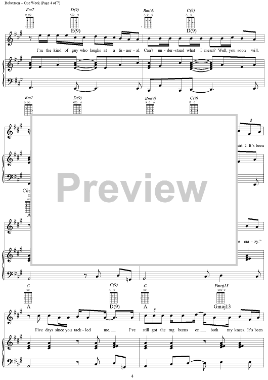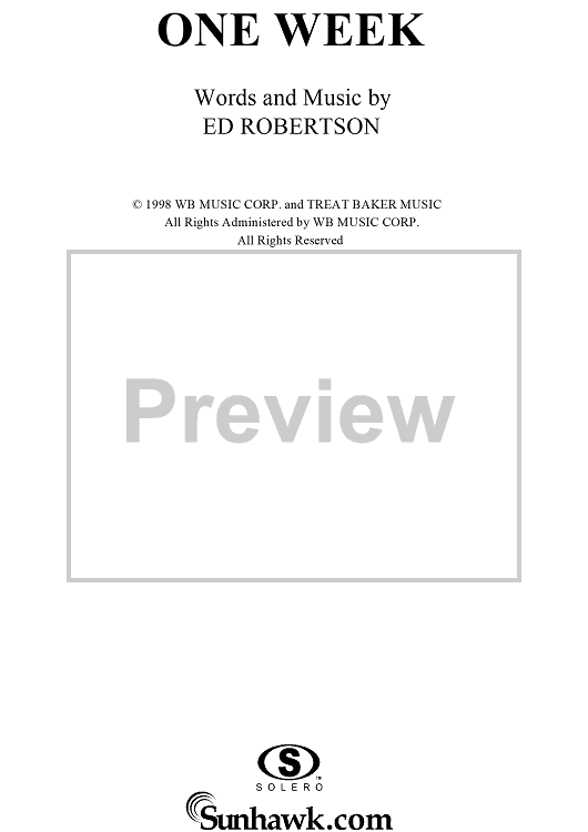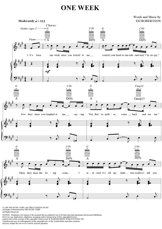 Digital Sheet Music for One Week by Ed Robertson, Barenaked Ladies scored for Piano/Vocal/Chords; id:255905
