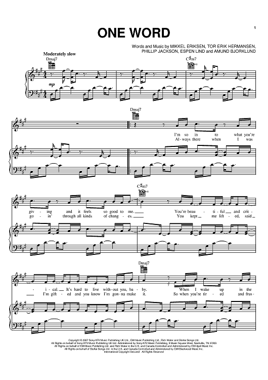 Digital Sheet Music for One Word by Tor Erik Hermansen, Elliott Yamin, Amund Bjorklund, Phillip Jackson, Espen Lind, Mikkel Eriksen scored for Piano/Vocal/Chords; id:401130