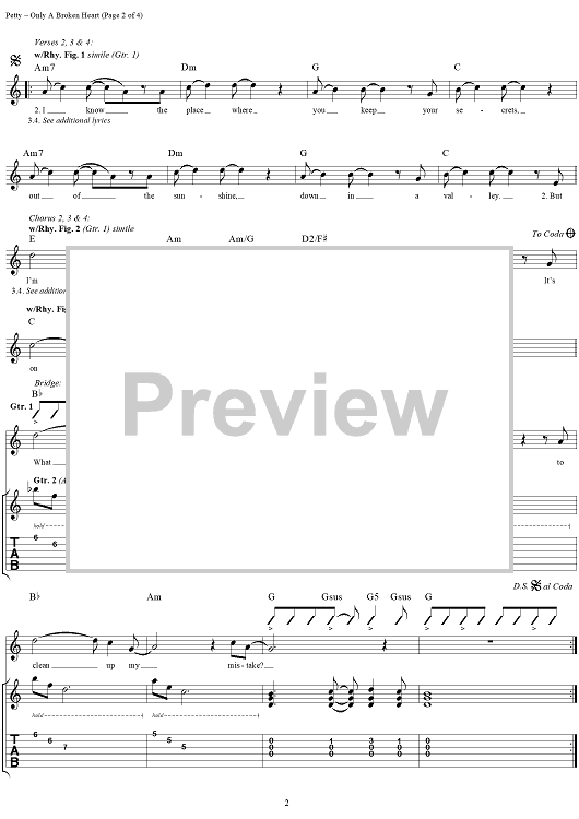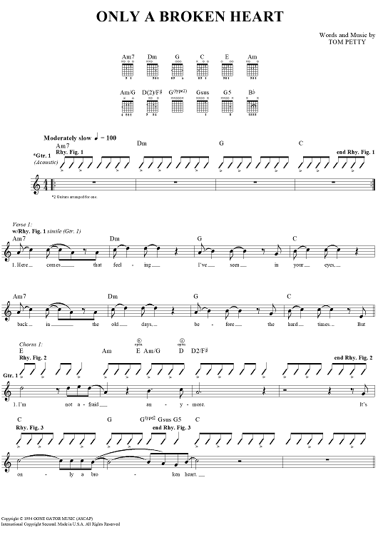 "Only a Broken Heart" Sheet Music by Tom Petty