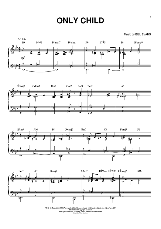 Digital Sheet Music for Only Child by Bill Evans scored for Piano; id:381977