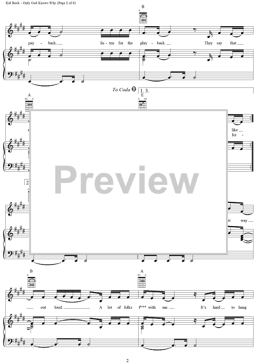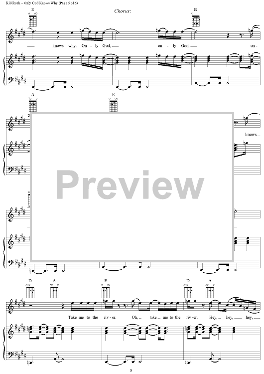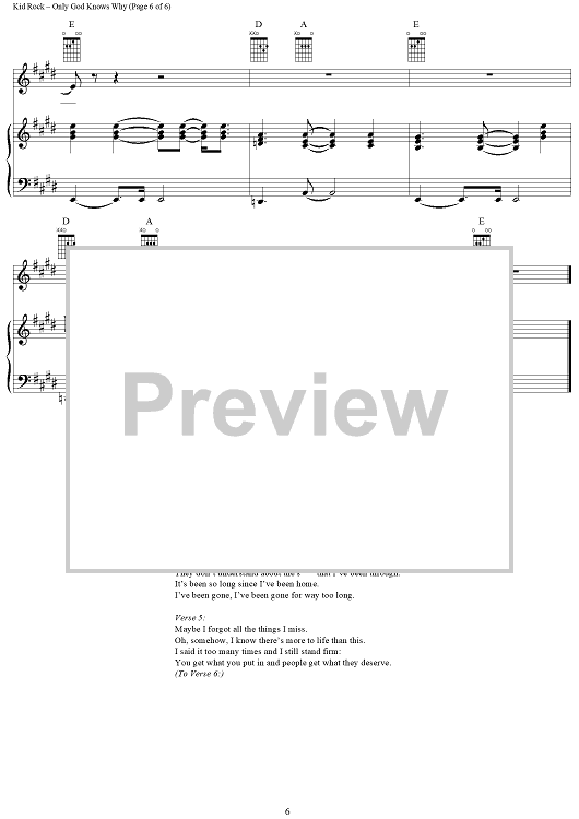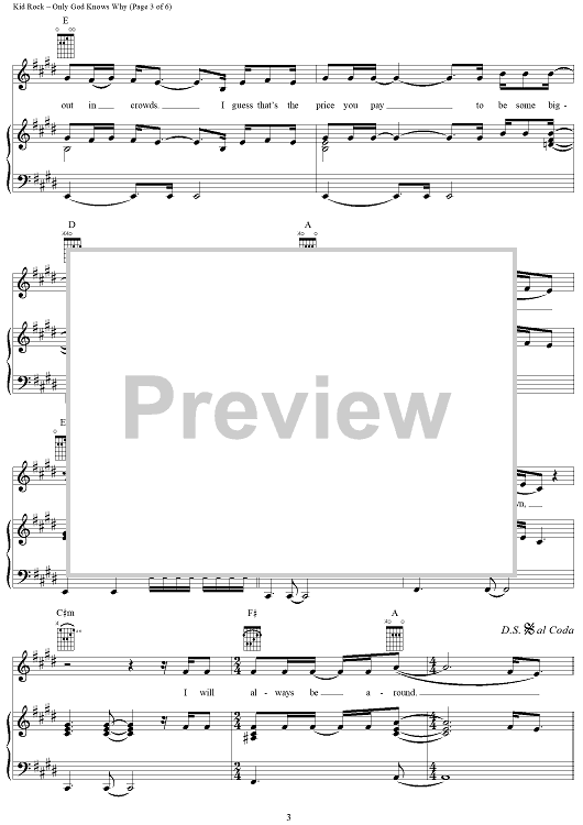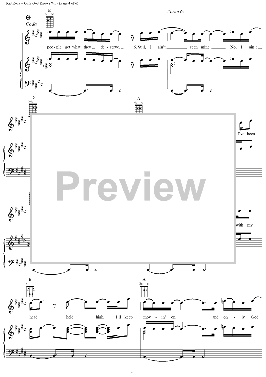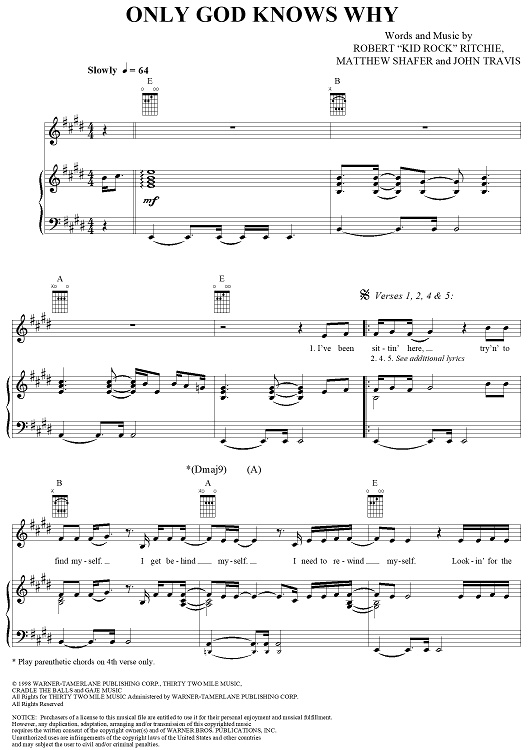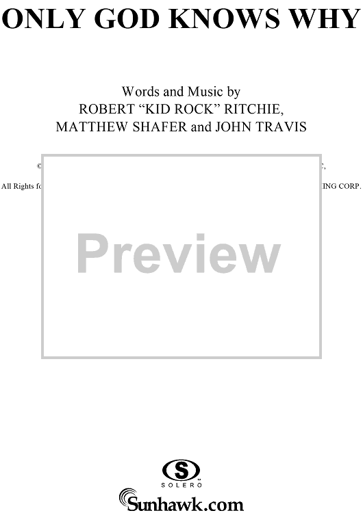 Digital Sheet Music for Only God Knows Why by Kid Rock, Matthew Shafer, John Travis scored for Piano/Vocal/Chords; id:236594
