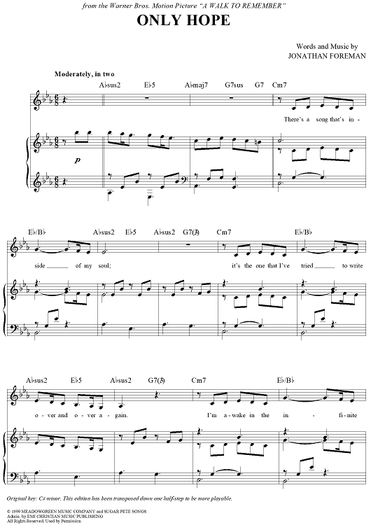 "Only Hope" Sheet Music by Mandy Moore