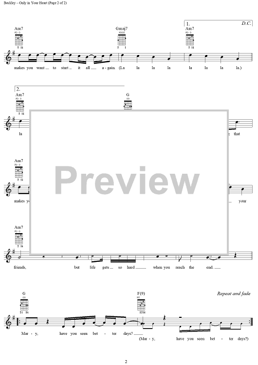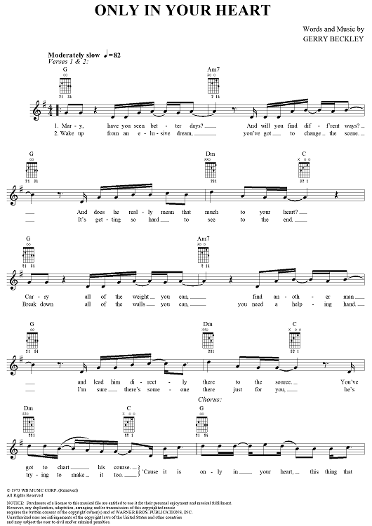 Digital Sheet Music for Only in Your Heart by America, Gerry Beckley scored for Easy Guitar/Vocal; id:288449
