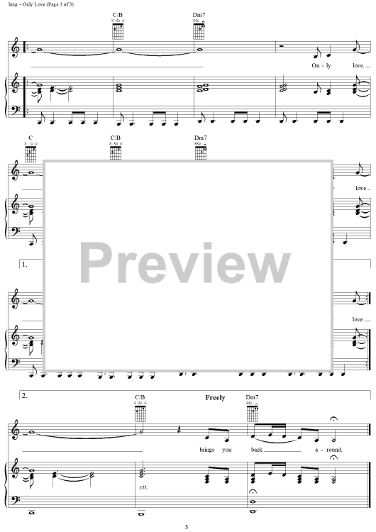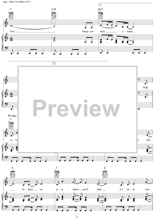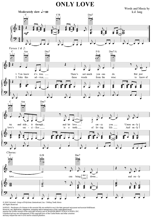 Digital Sheet Music for Only Love by K.D. Lang scored for Piano/Vocal/Chords; id:286196