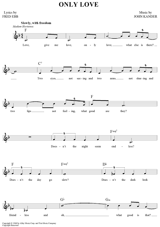 Digital Sheet Music for Only Love by John Kander, Fred Ebb scored for Lead Sheet; id:461071