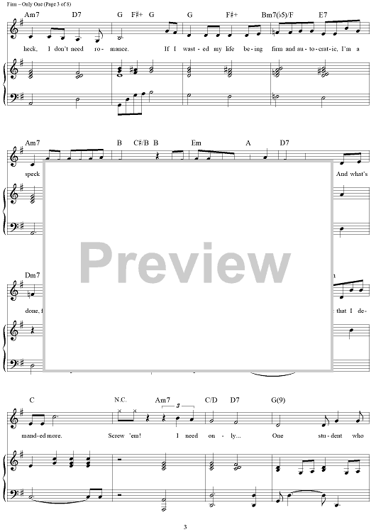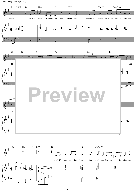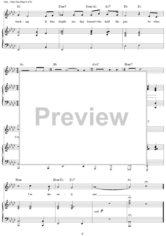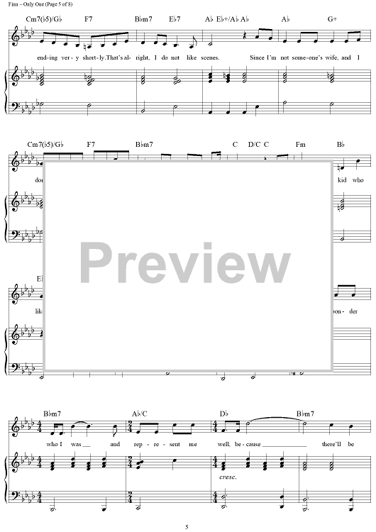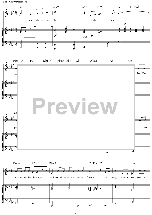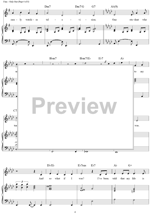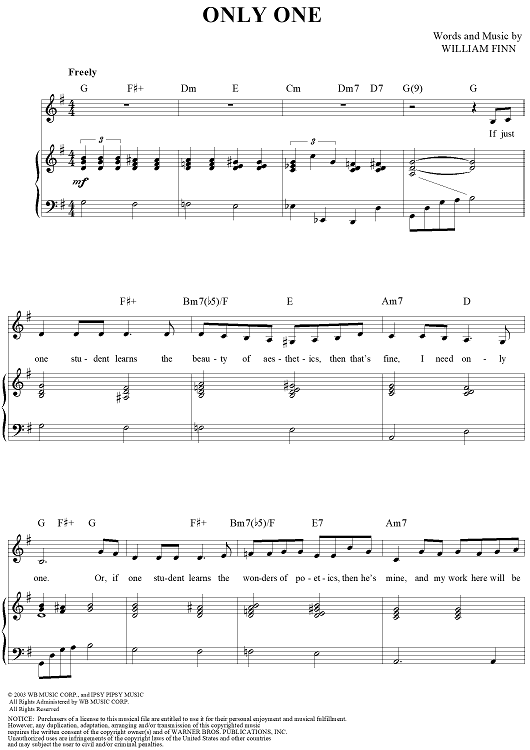 Digital Sheet Music for Only One by William Finn scored for Piano/Vocal/Chords; id:360035