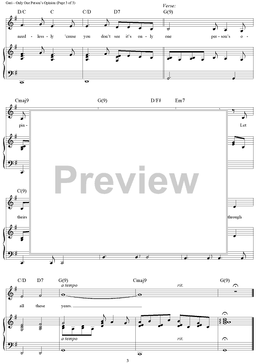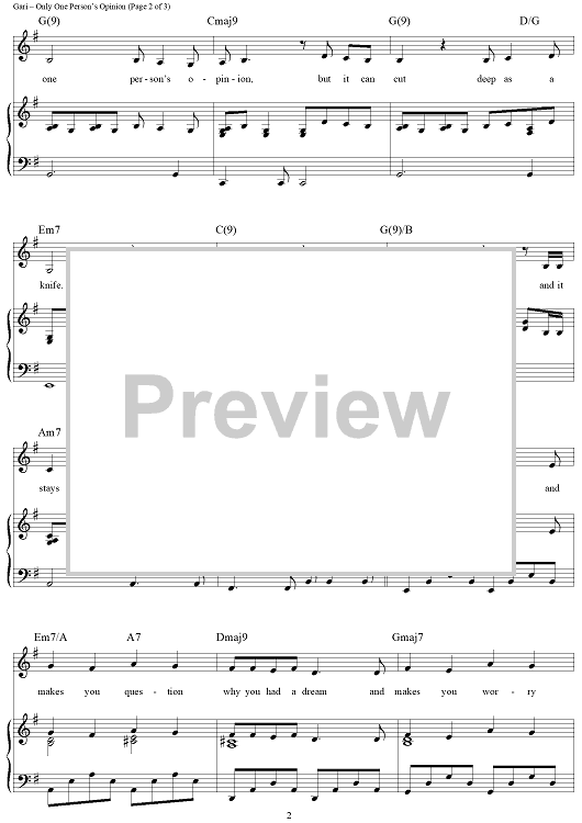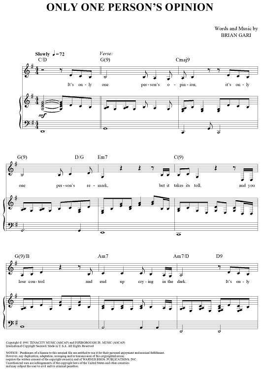 Digital Sheet Music for Only One Person's Opinion by Brian Gari scored for Piano/Vocal/Chords; id:355053