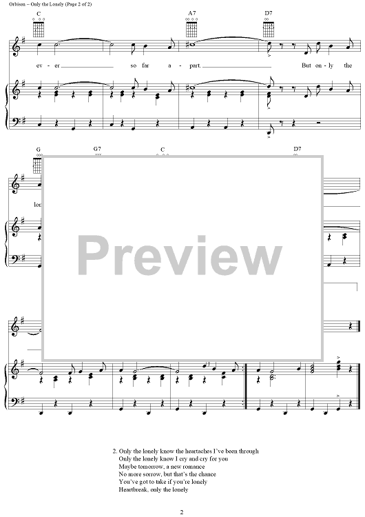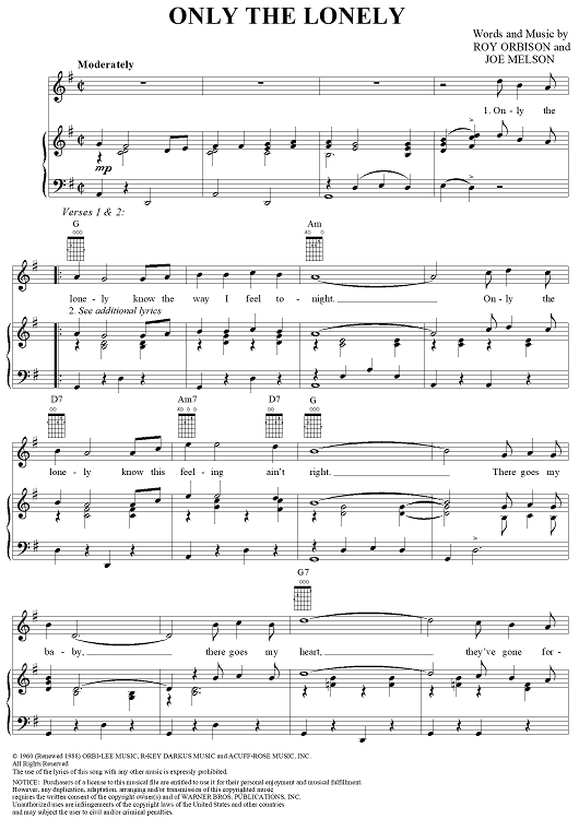Digital Sheet Music for Only the Lonely by Roy Orbison, Joe Melson scored for Piano/Vocal/Chords; id:131764