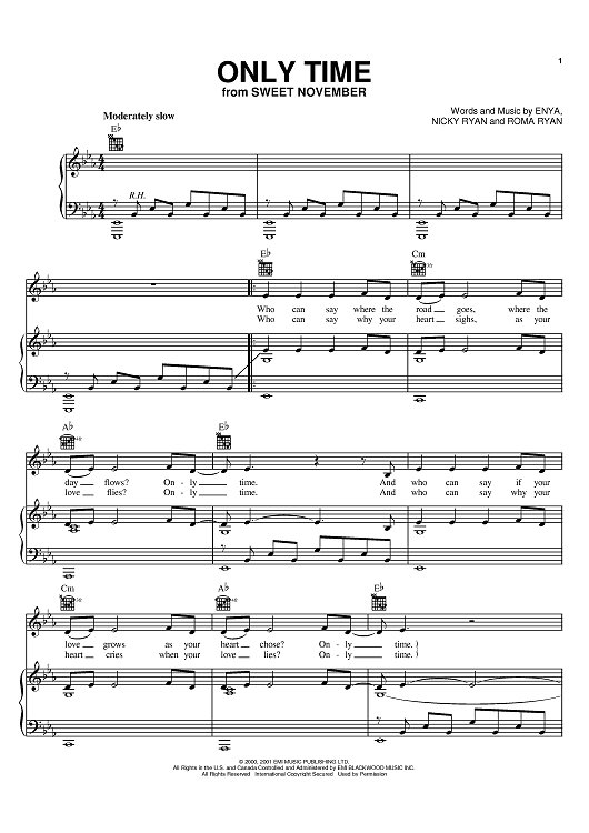 Digital Sheet Music for Only Time by Enya, Nicky Ryan, Roma Ryan scored for Piano/Vocal/Chords; id:368823
