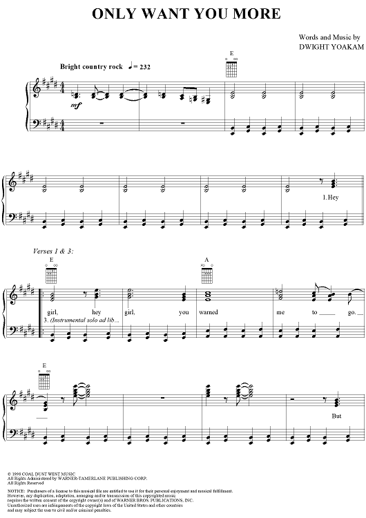 Digital Sheet Music for Only Want You More by Dwight Yoakam scored for Piano/Vocal/Chords; id:262726