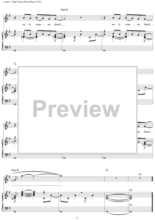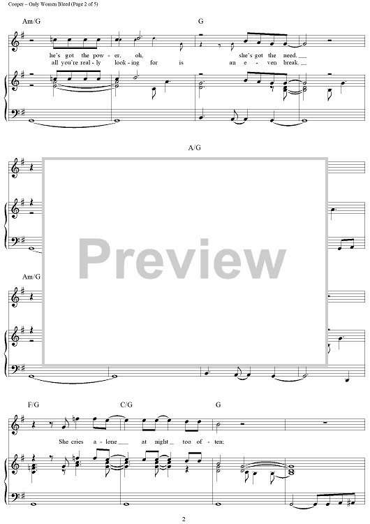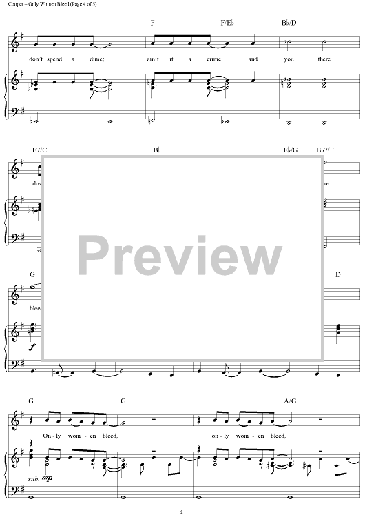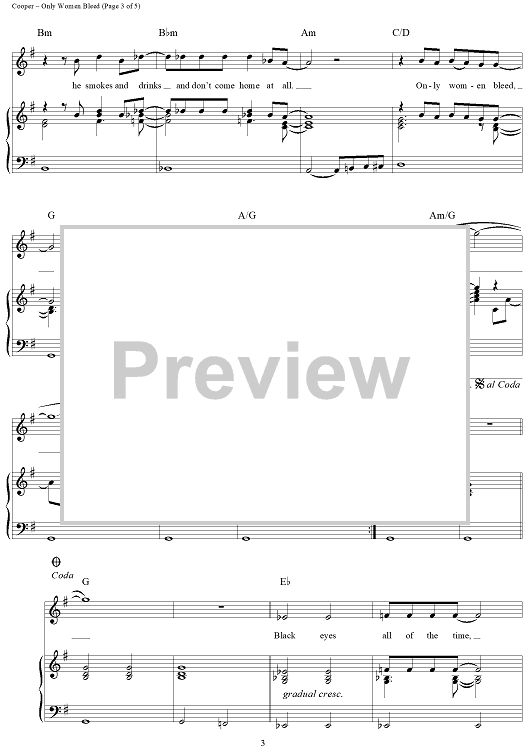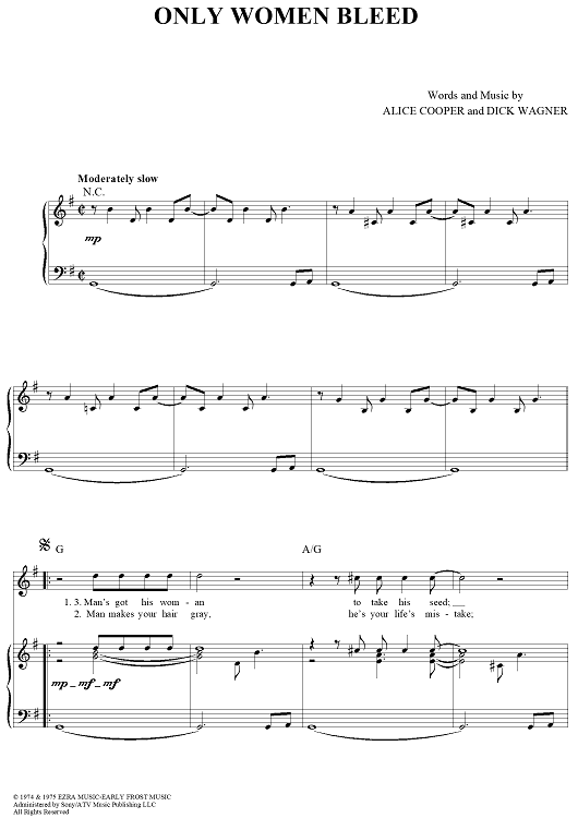 Digital Sheet Music for Only Women Bleed by Alice Cooper, Dick Wagner scored for Piano/Vocal/Chords; id:361664