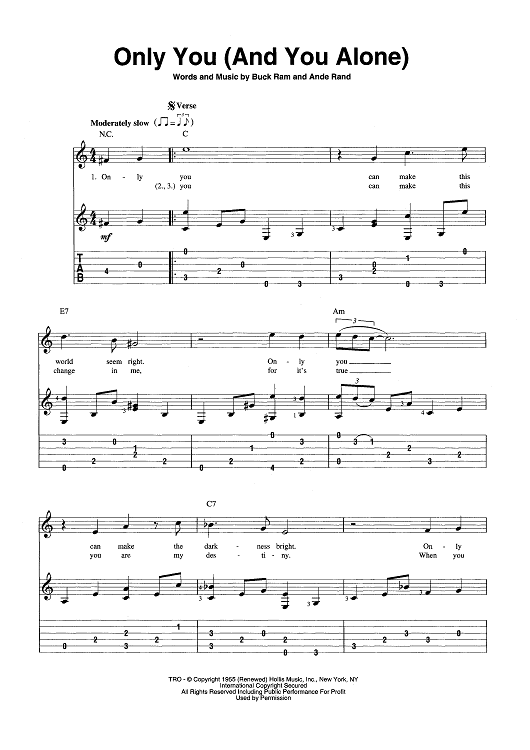 Digital Sheet Music for Only You (And You Alone) by Buck Ram, Ande Rand scored for Guitar Tab/Vocal/Chords; id:443338