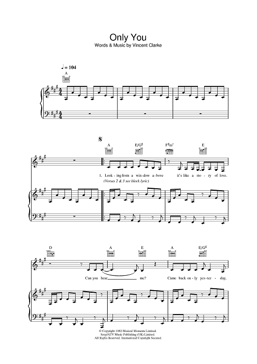 Digital Sheet Music for Only You by Vincent Clarke, Yazoo scored for Piano/Vocal/Chords; id:391430