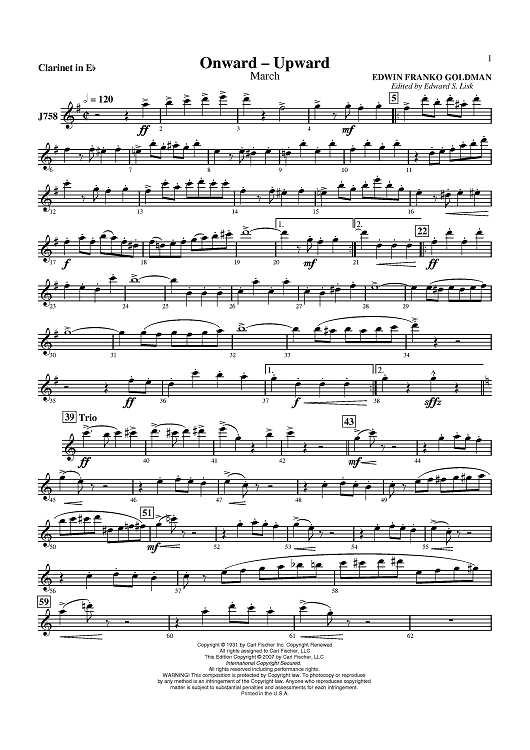 "Onward - Upward - Clarinet in E-flat" Sheet Music by Edwin Franko Goldman