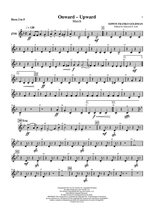 "Onward - Upward - Horn 2 in F" Sheet Music by Edwin Franko Goldman