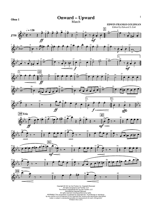 "Onward - Upward - Oboe 1" Sheet Music by Edwin Franko Goldman