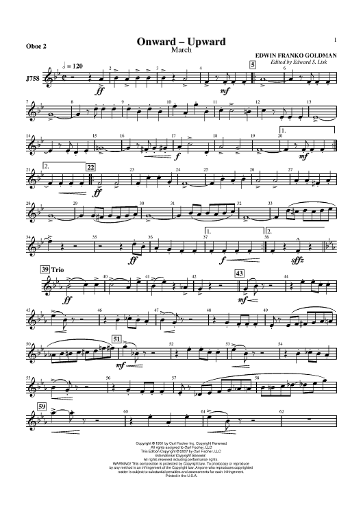 "Onward - Upward - Oboe 2" Sheet Music by Edwin Franko Goldman
