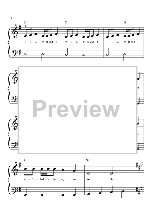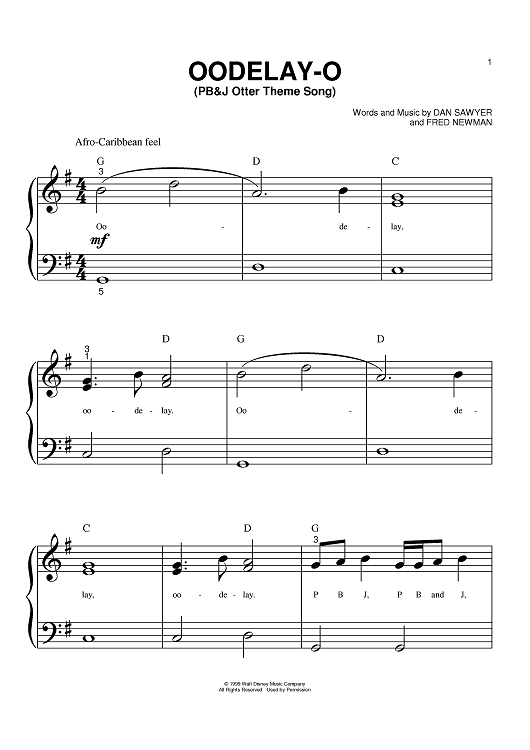 Digital Sheet Music for Oodelay-O (PB&J Otter Theme Song) by Fred Newman, Dan Sawyer scored for Big Note Piano; id:379325