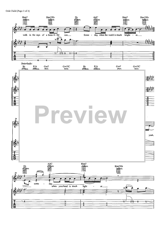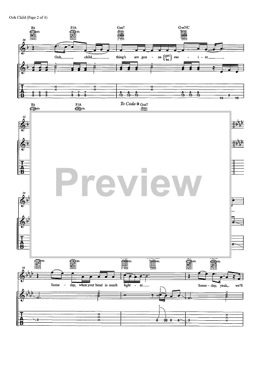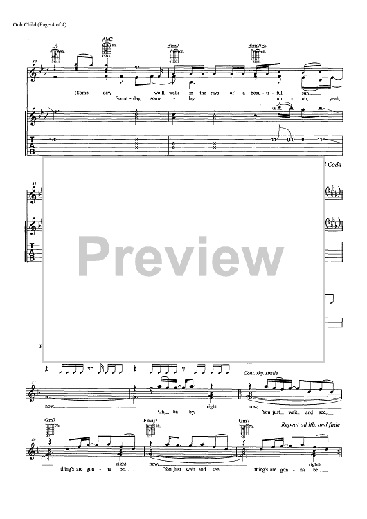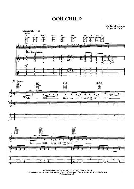 Digital Sheet Music for Ooh Child by Stan Vincent, The Five Satins scored for Guitar Tab/Vocal/Chords; id:457330