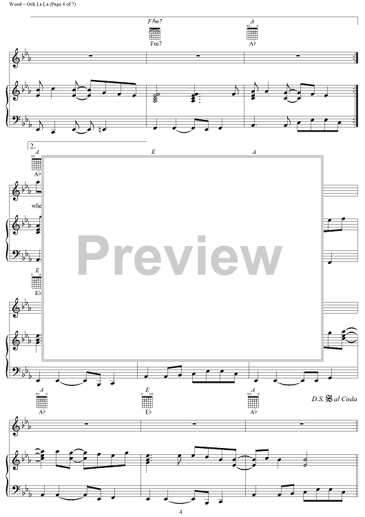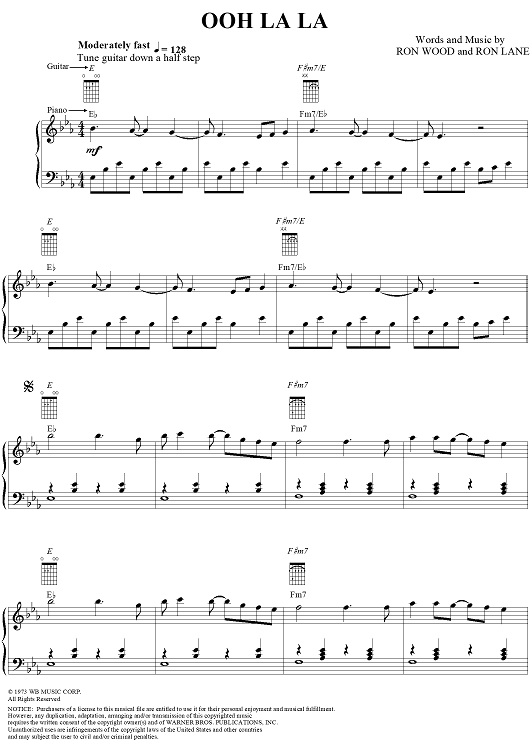 Digital Sheet Music for Ooh La La by Rod Stewart, Ron Wood, Ronnie Lane scored for Piano/Vocal/Chords; id:263383