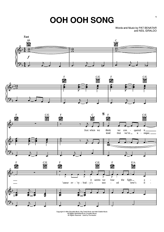 Digital Sheet Music for Ooh Ooh Song by Pat Benatar, Neil Giraldo scored for Piano/Vocal/Chords; id:388481