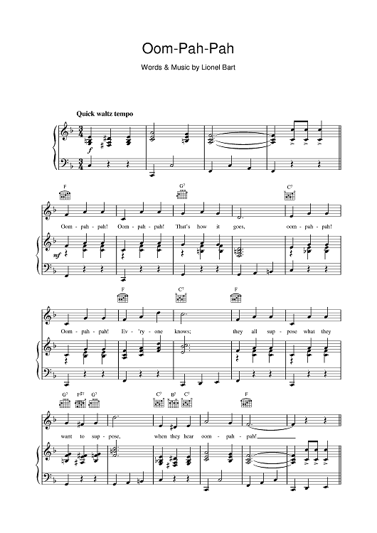 "Oom-Pah-Pah" Sheet Music by Lionel Bart