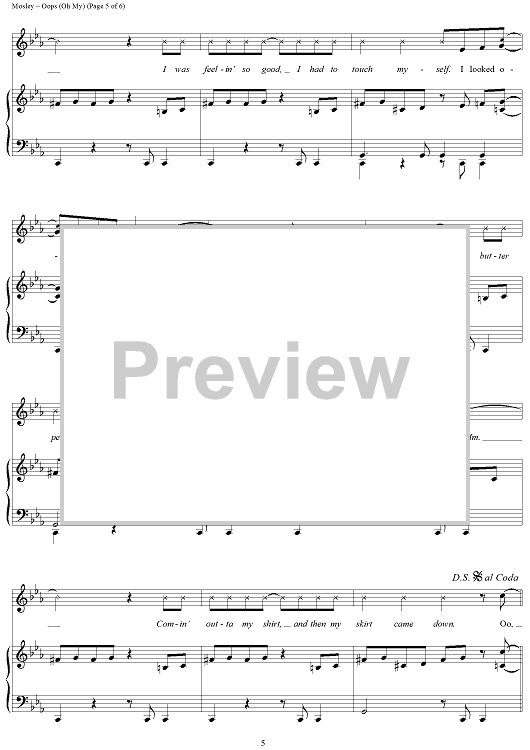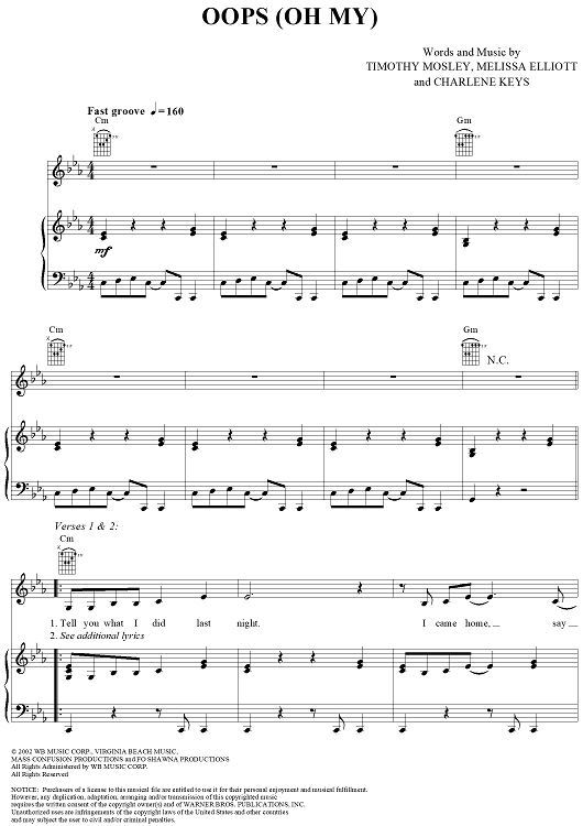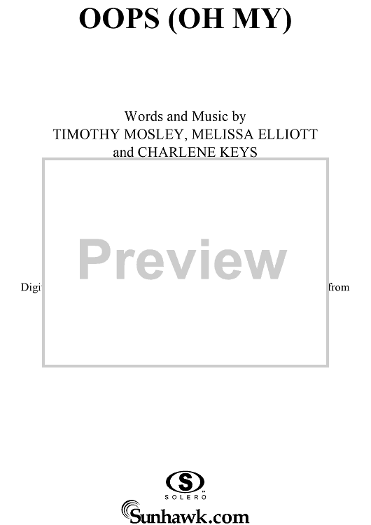 Digital Sheet Music for Oops (Oh My) by Missy Elliott, Timothy Mosley, Charlene Keys, Tweet scored for Piano/Vocal/Chords; id:290056