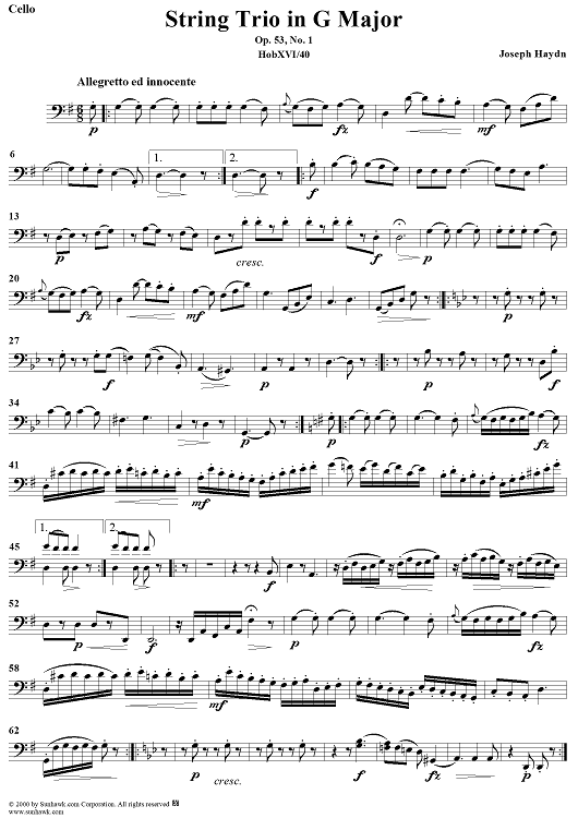 "Op. 53, No. 1 - Cello" Sheet Music by Franz Joseph Haydn