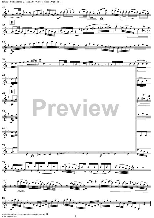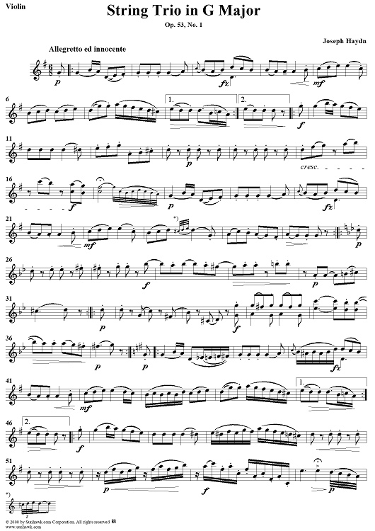 "Op. 53, No. 1 - Violin" Sheet Music by Franz Joseph Haydn