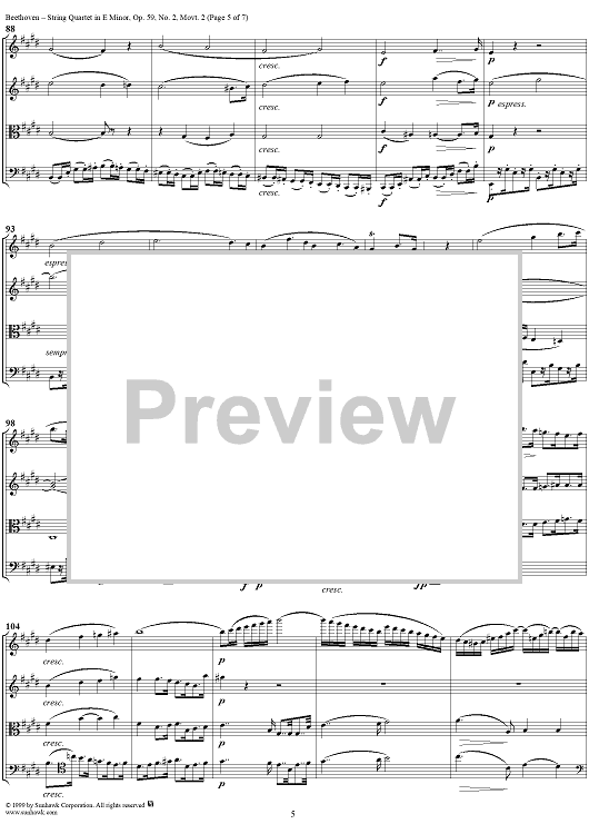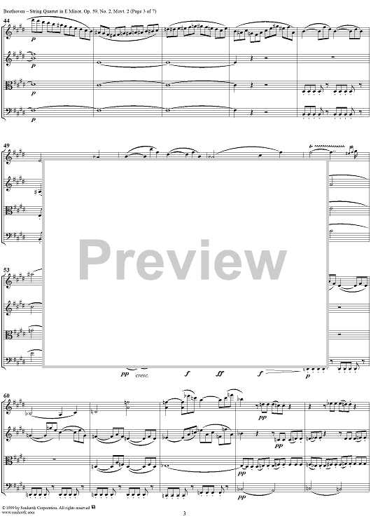 Digital Sheet Music for Op. 59, No. 2, Movement 2 - Score by Ludwig van Beethoven scored for String Quartet; id:118482