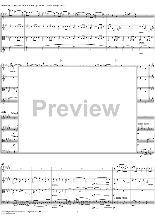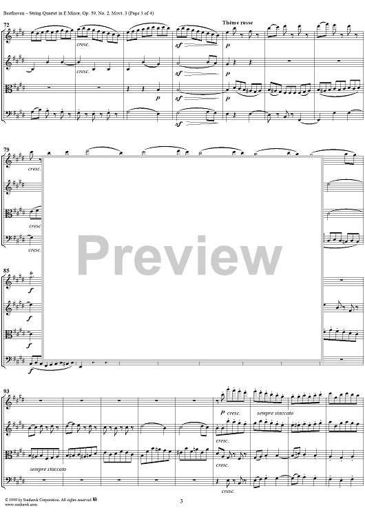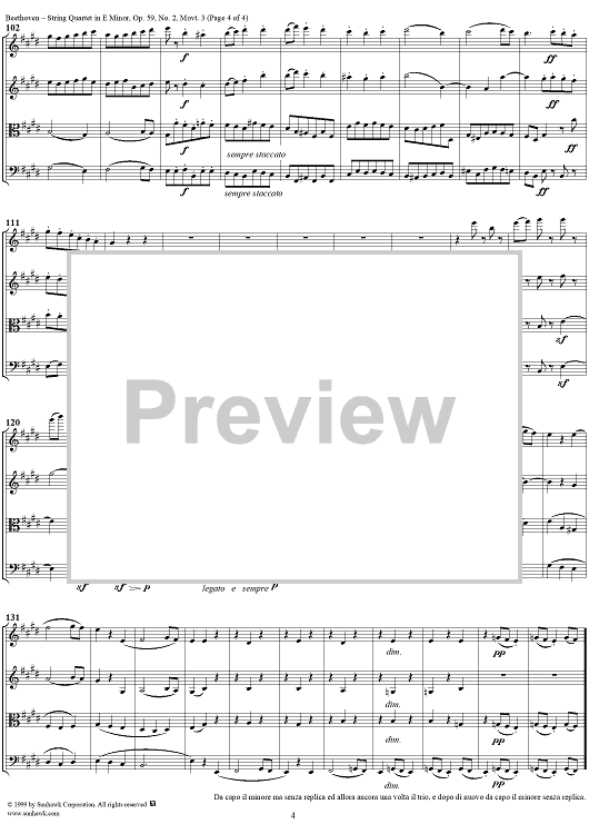 Digital Sheet Music for Op. 59, No. 2, Movement 3 - Score by Ludwig van Beethoven scored for String Quartet; id:118483