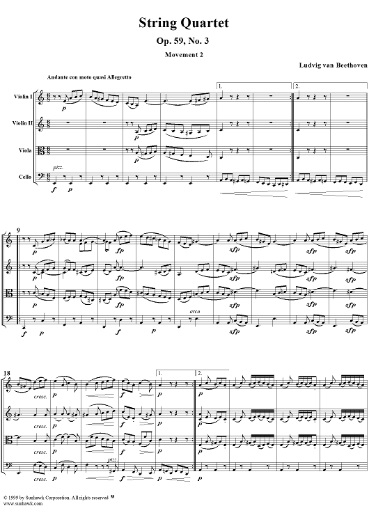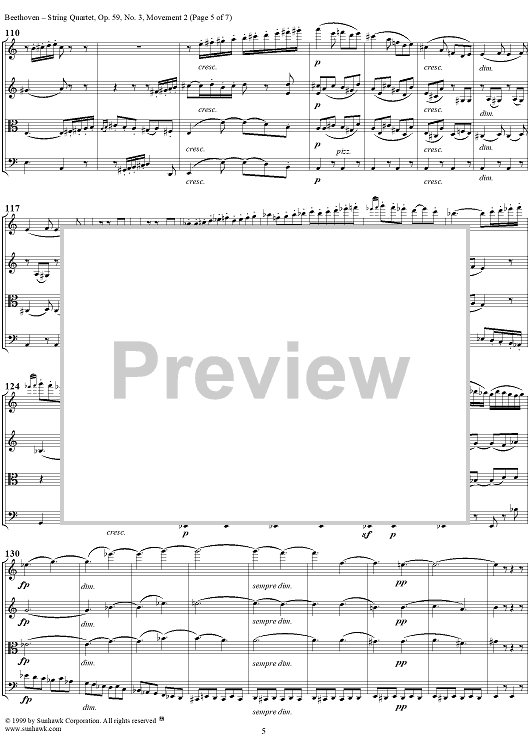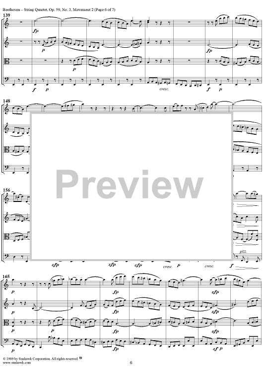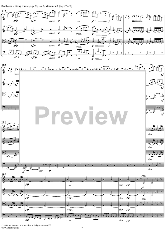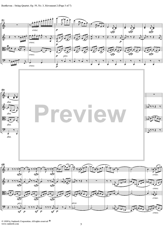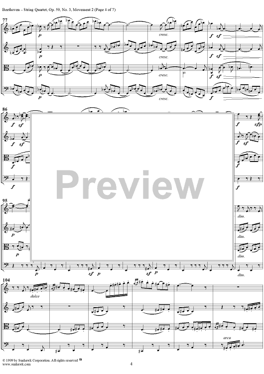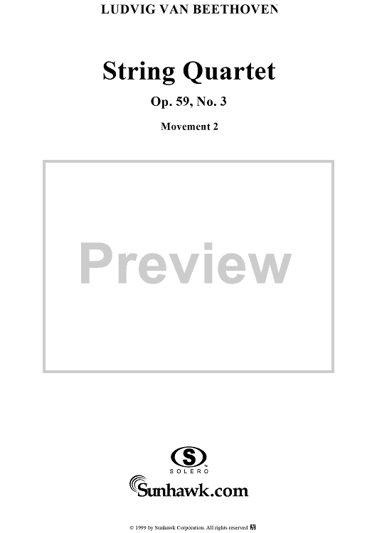 Digital Sheet Music for Op. 59, No. 3, Movement 2 - Score by Ludwig van Beethoven scored for String Quartet; id:151726