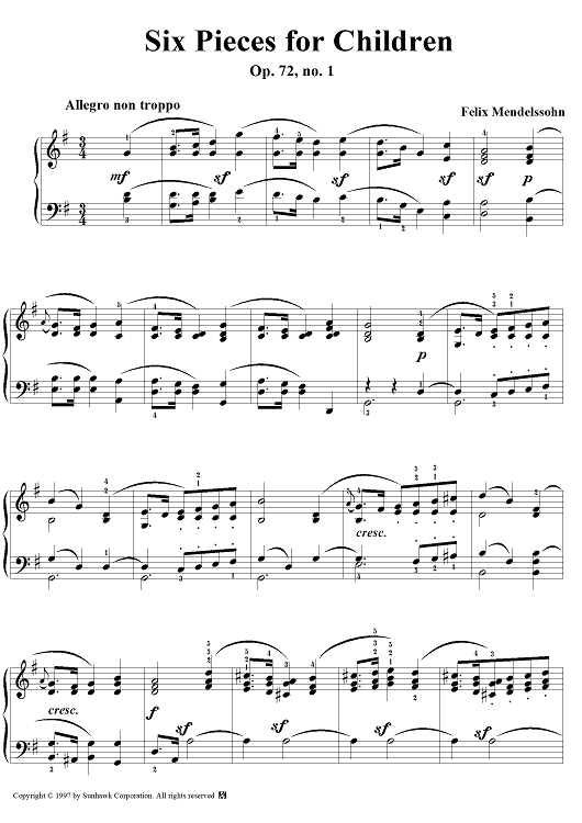 Digital Sheet Music for Op. 72, No. 1: Allegro non troppo by Felix Mendelssohn scored for Piano Solo; id:94748