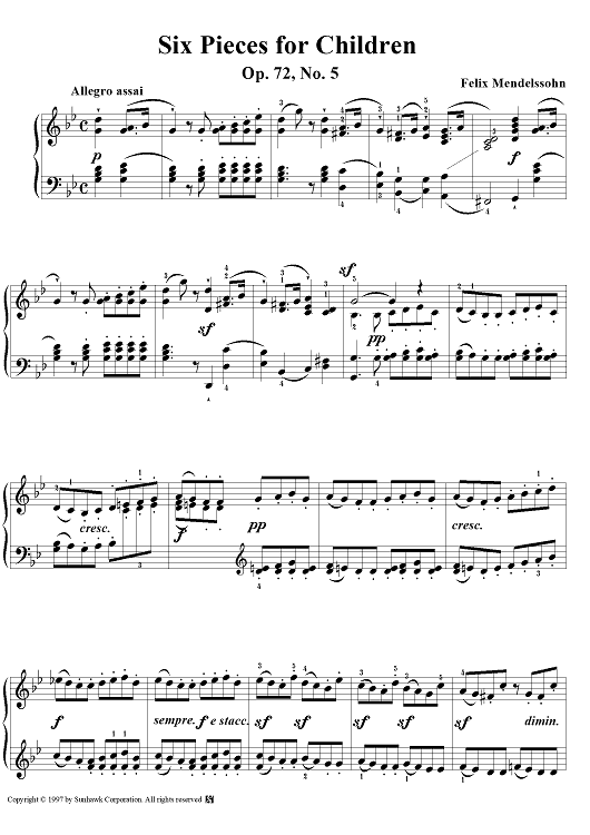 Digital Sheet Music for Op. 72, No. 5: Allegro assai by Felix Mendelssohn scored for Piano Solo; id:94887