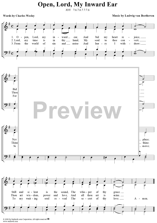 Digital Sheet Music for Open, Lord, My Inward Ear by Ludwig van Beethoven scored for Four-part Mixed Chorus; id:275693