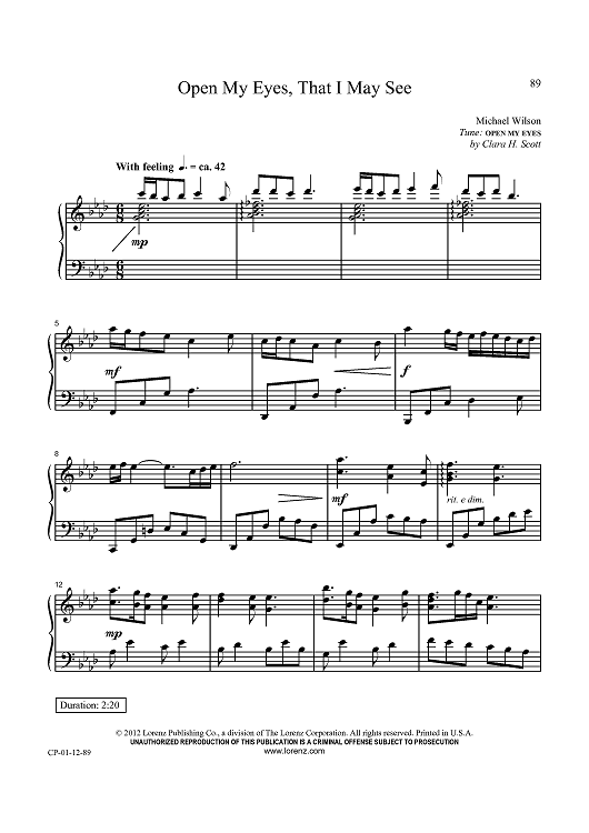 Digital Sheet Music for Open My Eyes, That I May See by Clara H. Scott, Michael Wilson scored for Piano Solo; id:434600