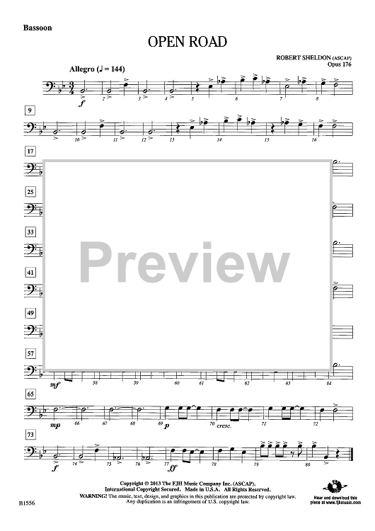 Digital Sheet Music for Open Road - Bassoon by Robert Sheldon scored for Concert Band; id:440278
