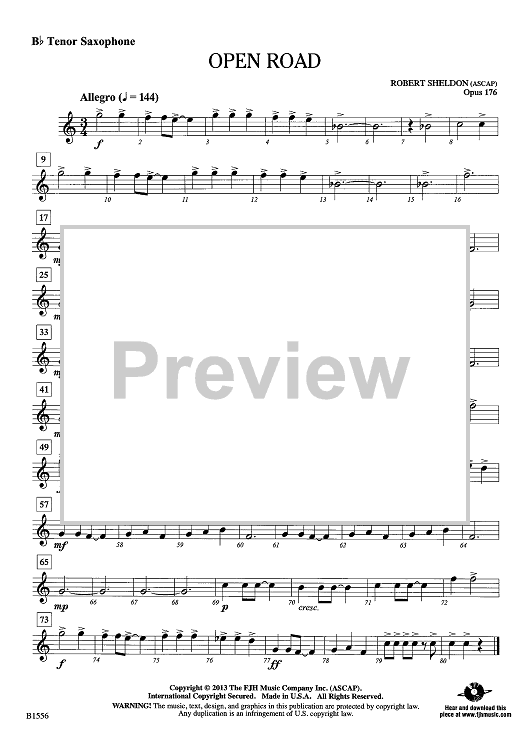 Digital Sheet Music for Open Road - Bb Tenor Sax by Robert Sheldon scored for Concert Band; id:440283
