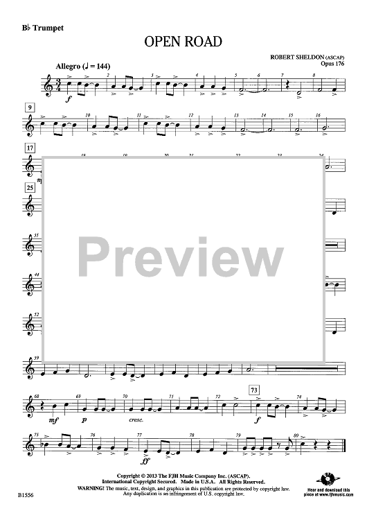 "Open Road - Bb Trumpet" Sheet Music by Robert Sheldon