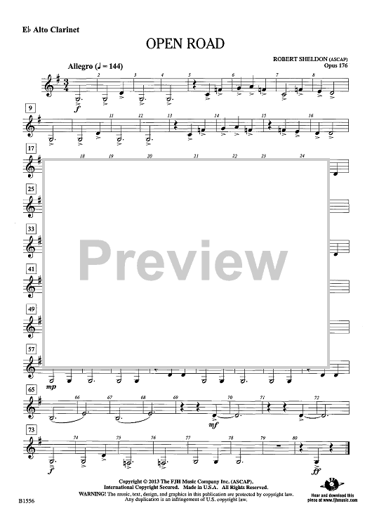 Digital Sheet Music for Open Road - Eb Alto Clarinet by Robert Sheldon scored for Concert Band; id:440280