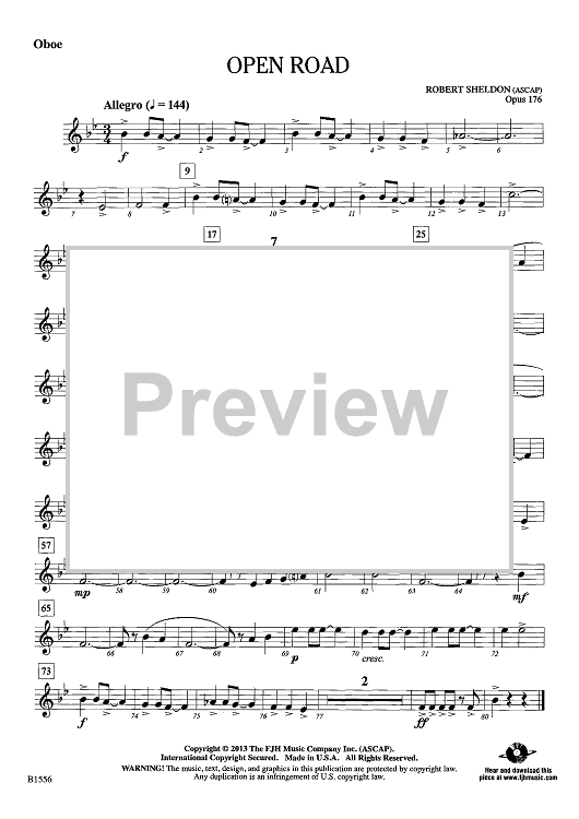 Digital Sheet Music for Open Road - Oboe by Robert Sheldon scored for Concert Band; id:440277