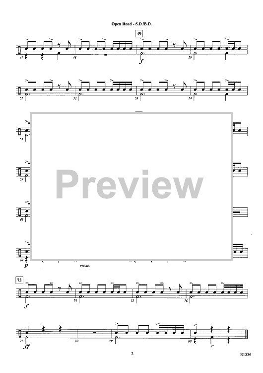 Digital Sheet Music for Open Road - Snare Drum & Bass Drum by Robert Sheldon scored for Concert Band; id:440293
